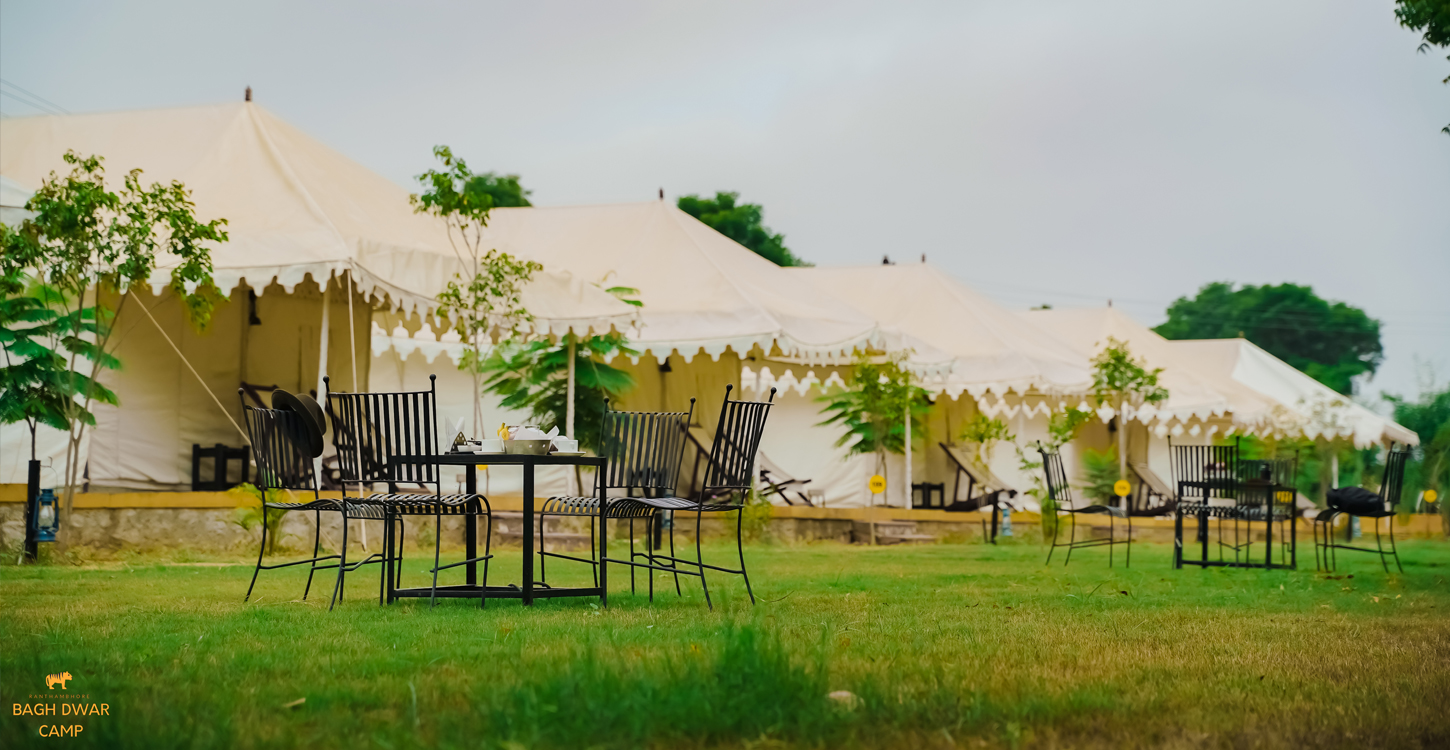 Bagh Dwar Camp is a family run ecotourism venture located near Ranthambhore National Park at Sawai Madhopur. We have 12 Swiss camp and 2 roof top cottage with jungle view. The landscape facing the confluence of Aravali hills and the forest is the natural habitat for wildlife. The 4 acre camp with our family home, has been planted with guava orchid, mango trees along with vegetable garden. It commands a spectacular view of the forest and the Aravali hills. Ideal location to go for long walks along the village and the park.We welcome guests to come and stay in our camp and share our passion for the wild. We recommend a minimum two days stay to enjoy wilderness.